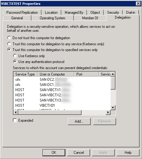 Talking about Kerberos delegation, we must configure delegation as follows to allow SSO to XenApp: