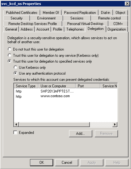 - on the service account you’re using for KCD, you need to add delegation for either HOST/<hostname> or HTTP/<hostname> on that server