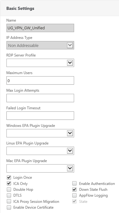 c) enable ICA Only (if you’re not going to use SSL VPN or SmartAccess policies) so you don’t consume Universal Licenses.
