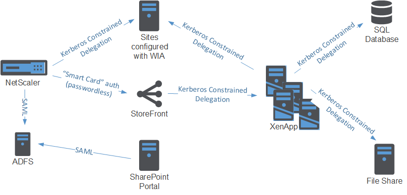 In this post we’ll be chaining products like ADFS, SharePoint, Citrix XenApp and NetScaler with technologies like SAML and Kerberos. We’ll also be using the new Unified Gateway functionality to do everything with a single external IP. I’m also assuming some basic knowledge of ADFS, IIS and NetScaler Gateway. Indeed, this is not for the faint hearted.