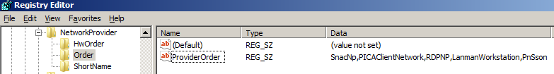 value for ProviderOrder contained only LanmanWorkstation.